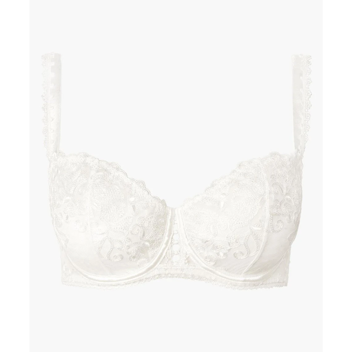 Enveloppant la partie inférieure des seins, ses bonnets sont habillés en dentelle brodée hyper féminine. Robustes, ses armatures accentuent le maintien de votre poitrine. Sa coupe vous crée un décolleté sensuel et glamour.