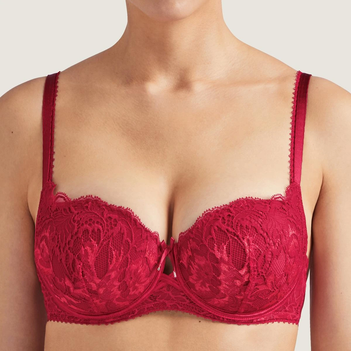 Compromis parfait entre raffinement, confort et sensualité, vous ne pourrez plus vous passer de ce Soutien-gorge corbeille confort armatures rouge Aubade.