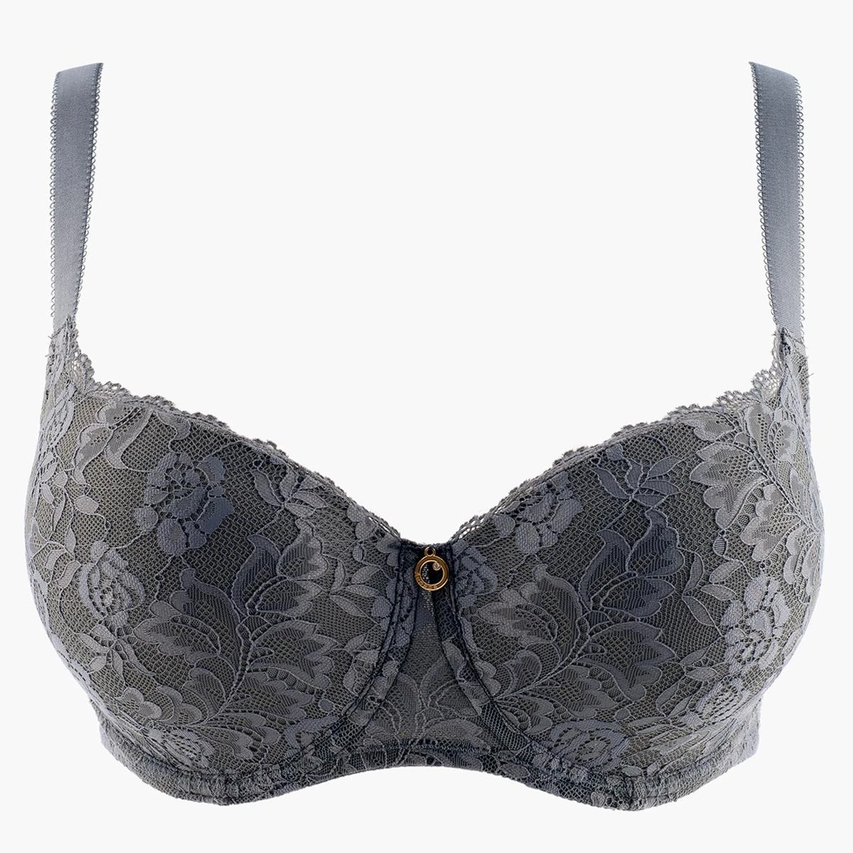 Succombez au charme de ce superbe soutien-gorge corbeille coques armatures gris de la collection Rosessence par Aubade.