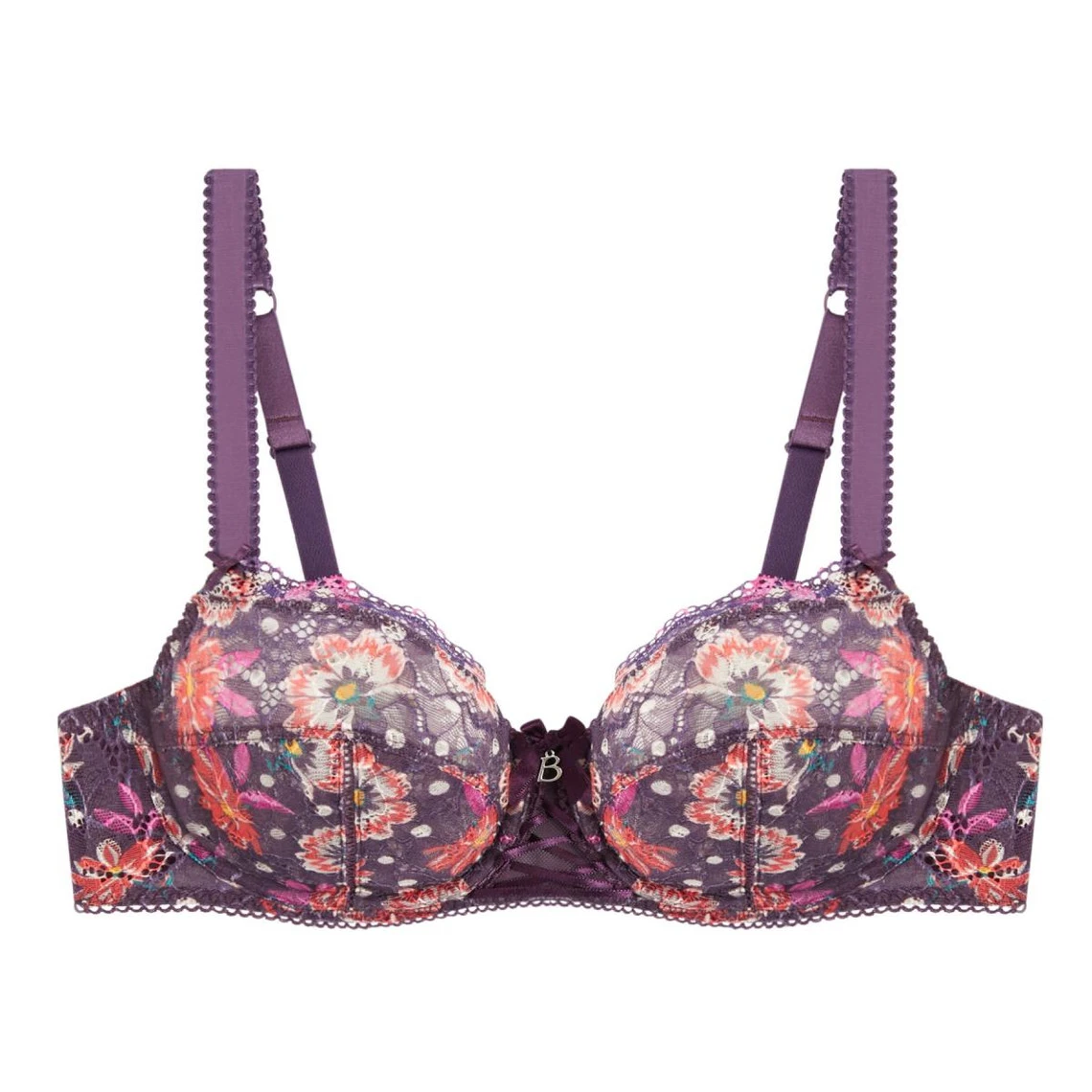 Ces bonnets enveloppants avec armatures offrent beaucoup de maintien et de confort à la poitrine. Ils sont réalisés en dentelle ultra-visuelle pour une silhouette élégante et féminine. Les détails picotés, le nœud et le bijou à l’entre-sein apportent une touche de fantaisie à toute la pièce.
