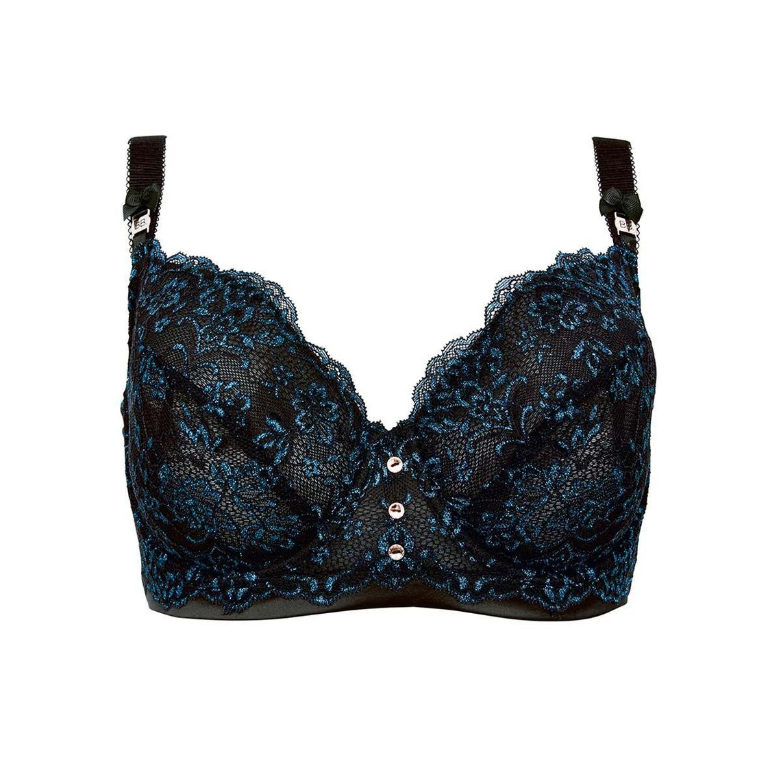 Son avant se distingue par son tulle recouvert d’une superbe dentelle florale. Ses bonnets englobent la poitrine et offrent un parfait maintien, ainsi qu’un galbe rond et naturel. Son dos propose une coupe en U, accentuant le maintien et le confort. Il possède des bretelles larges et réglables et se ferme par des agrafes sur plusieurs positions.