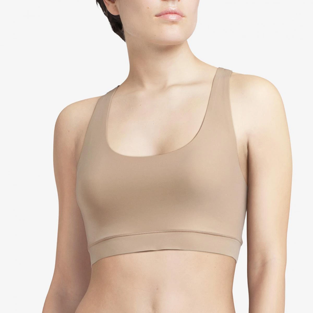 Avec cette brassière couvrante sans armatures beige de Chantelle, vous pouvez bouger en toute tranquillité.
