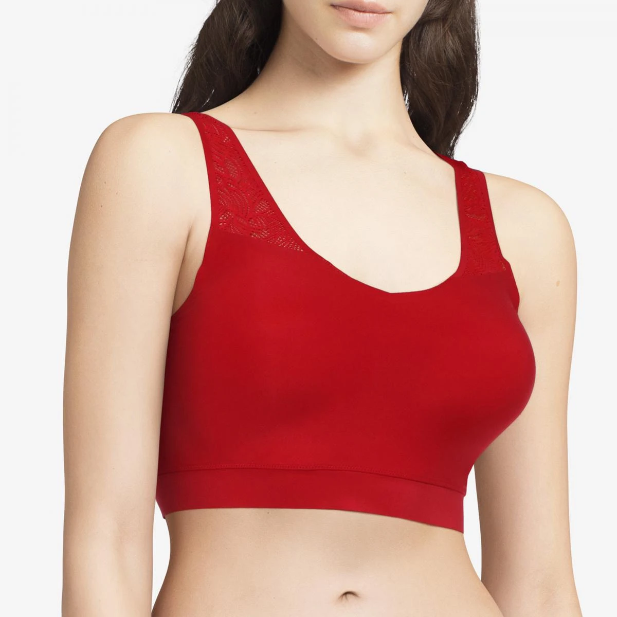 Portez avec douceur et tendresse cette sublime Brassière paddé dentelle stretch rouge de la collection SOFT STRETCH par la marque Chantelle.