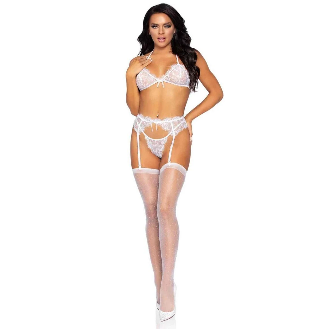 Ayez l’air tout aussi incroyable avec cet Ensemble 3 pièces – soutien-gorge triangle, string et porte-jarretelles – Blanc de la collection Love to Love par Leg Avenue.
