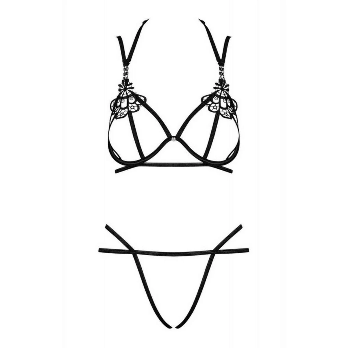 L’Ensemble 2 pièces – Soutien-gorge et string ouverts – Noir de la marque Obsessive appartenant à la collection Badossa est la lingerie sexy par excellence pour enflammer vos soirées à deux !