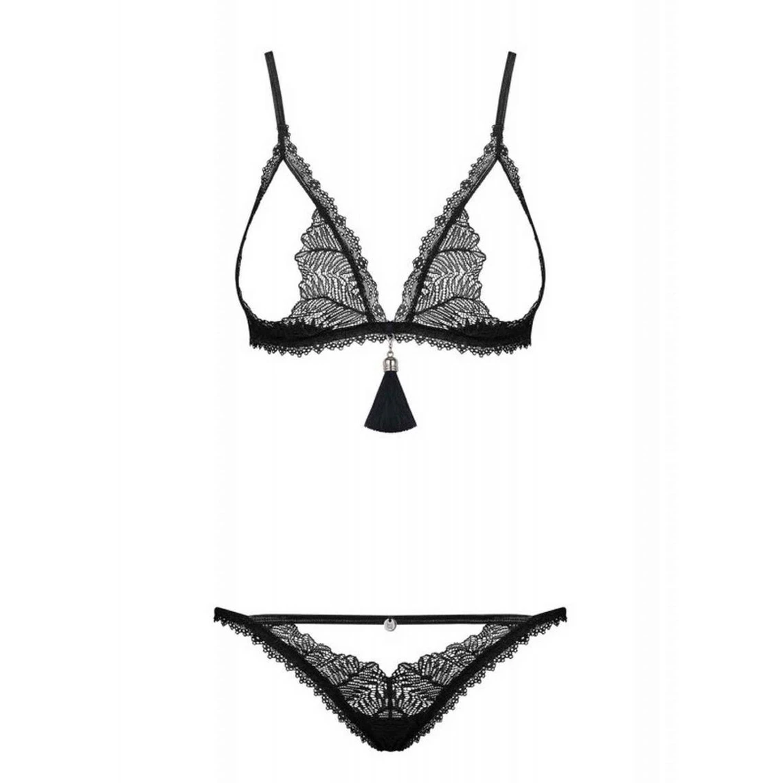 L’Ensemble 2 pièces – Soutien-gorge triangle ouvert et string – Noir de la marque Obsessive issu de la collection Romanesa est la pièce qu’il vous faut pour pimenter vos relations intimes !