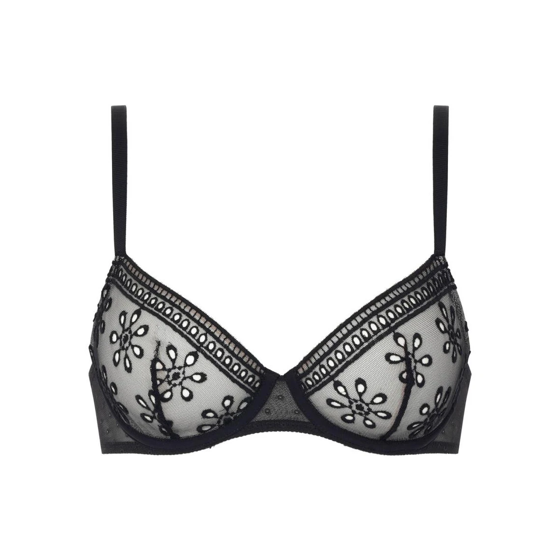 Conçu dans un tulle délicat et soyeux, il promet un réel confort au porté. Doublés, ses bonnets sont magnifiés par des broderies florales et se parent d’armatures afin de procurer une bonne tenue et un joli galbe de la poitrine. On adore la touche de dentelle sublimant le décolleté.