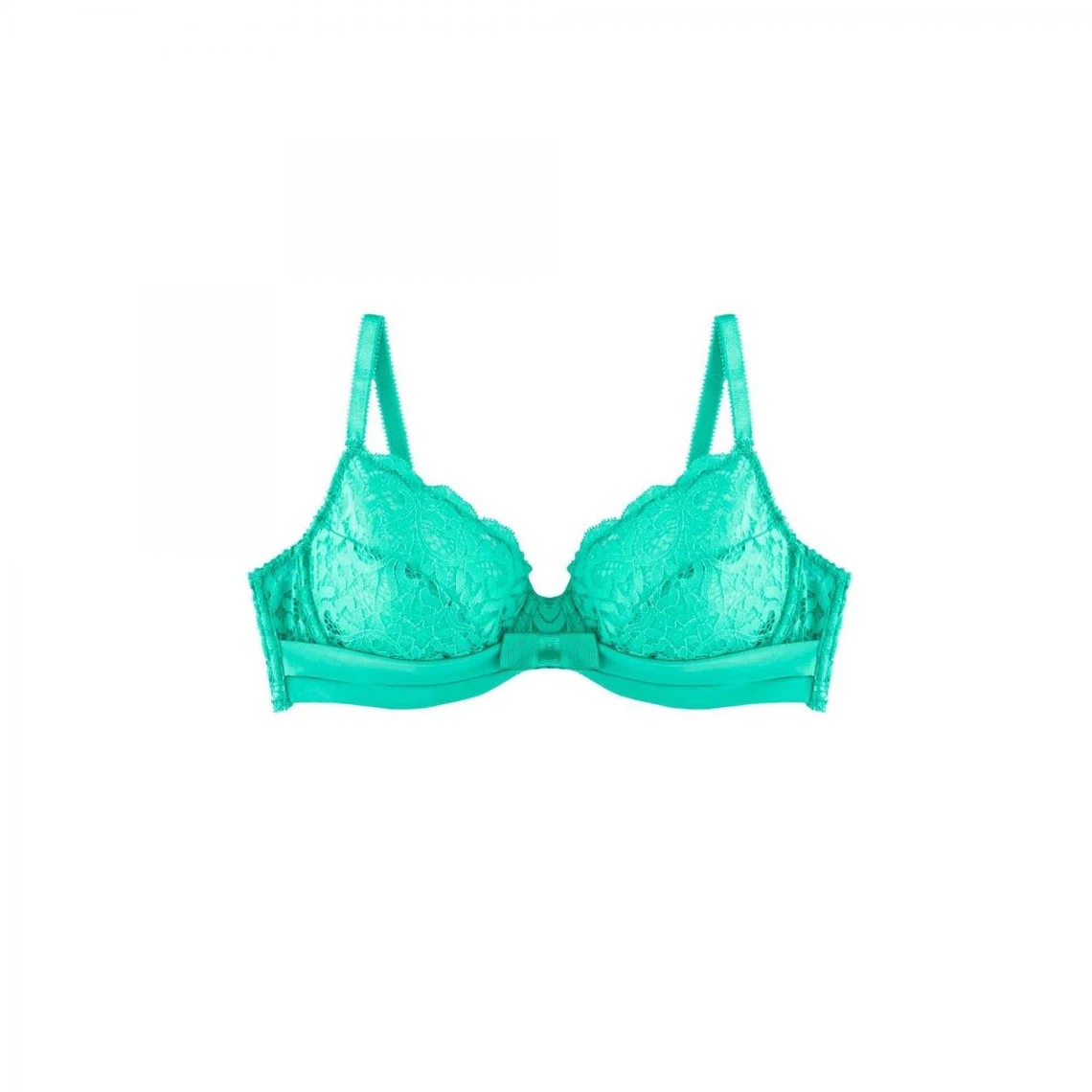 Soutien-gorge en dentelle à armatures et bonnets doublé de tulle. Basques en microfibre plissée habillée d’un nœud en gros grain pour sublimer le décolleté. Les bretelles élastiquées sont réglables. Confortable grâce à ses baleines placées sur les côtés. Dos tout en dentelle avec élastique fantaisie sur les ailes et fermeture en agrafes 2×3 positions. Disponible du 85B au 95D.
