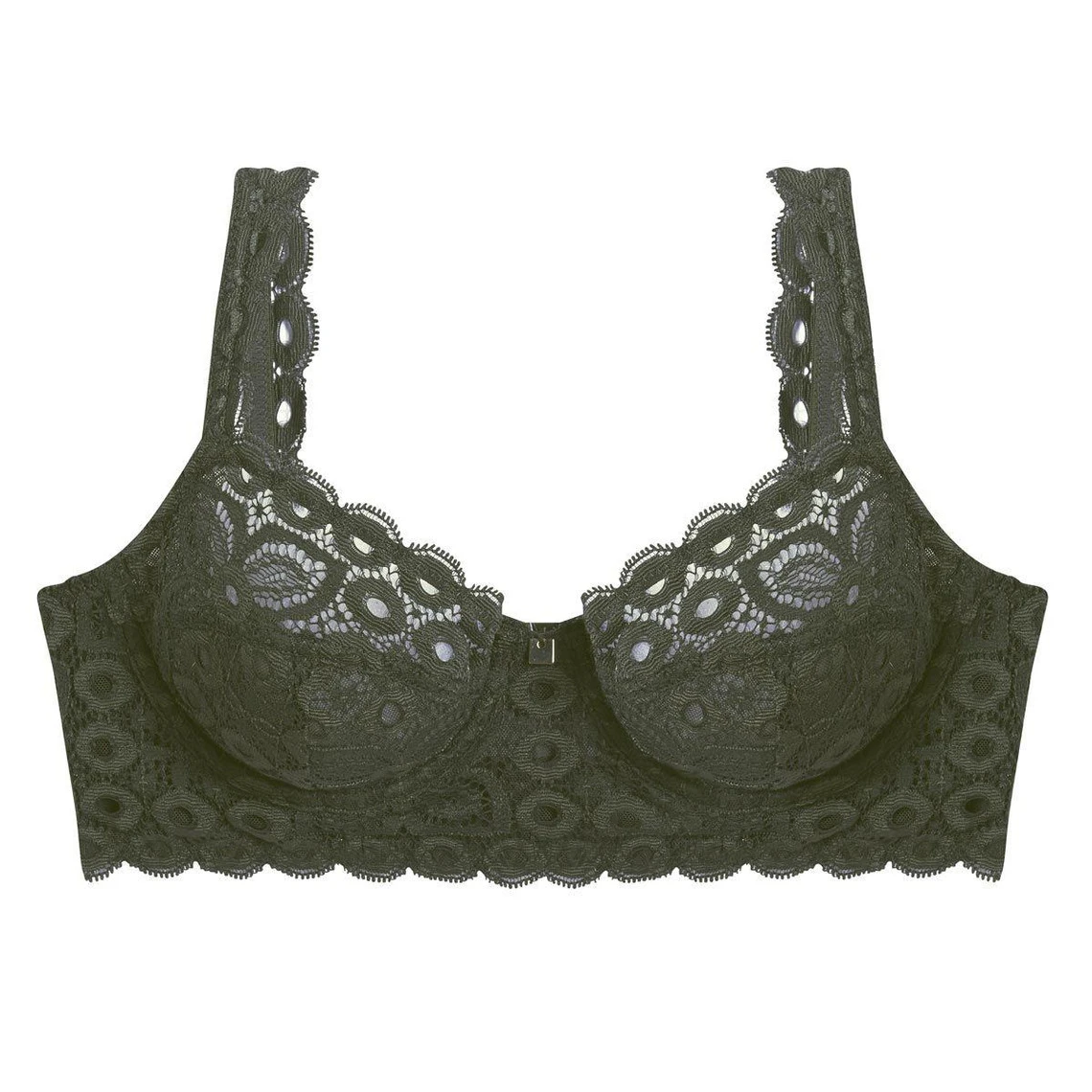 Collection Camille Cerf & Pomm’Poire. Soutien-gorge armatures. Dentelle florale française « Sophie Halette ». Bijou mordoré à l’entre-seins. Bretelles larges réglables. Fermeture double : 2 agrafes, 3 positions avec nœuds gros-grain. Disponible du 90E au 105E Matière principale : 85% polyamide, 15% Elasthanne – Doublure bonnet : 100% polyester