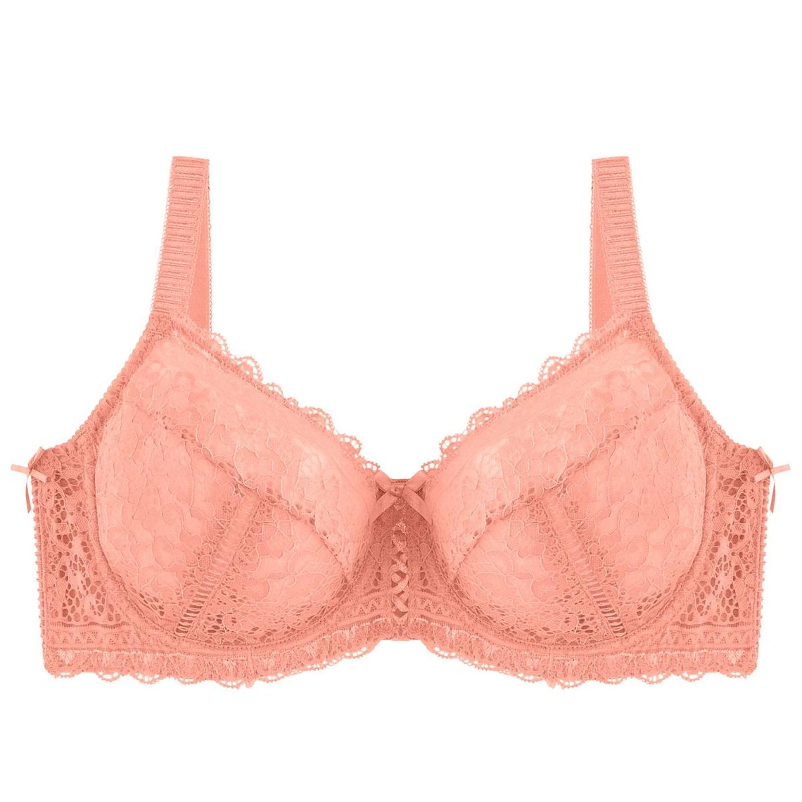 Soutien-gorge à armatures grand confort finition emboîtante adaptée au grand maintien. Bonnets et basque en dentelle. Jour échelle sur les bas bonnets et à l’entresein. Nœud satiné. Bonnets non coqués entièrement doublés de tulle. Bretelles fantaisies larges, élastiquées réglables. Ailes en microfibre unie avec baleine pour plus de confort, jour échelle et petits noeuds. Finition dos cheminée. Agrafages possible sur 3×3 positions. Disponible du 90D au 105E.