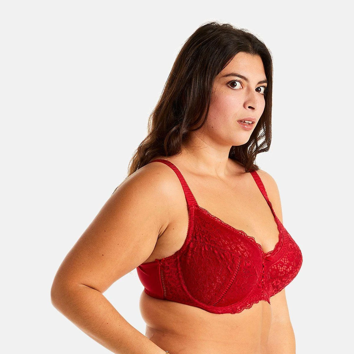 Soutien-gorge armatures grand maintien. En dentelle et microfibre imprimée au motif « floral ». Criss cross et noeud satin à l’entre-seins. Bretelles larges réglables. Bonnets doublés d’une matière douce et rigide. Finitions dos cheminée. Forme emboitante. Basque élastiquée sous poitrine. Fermeture 3 agrafes, 3 positions. Disponible du 100C au 110F