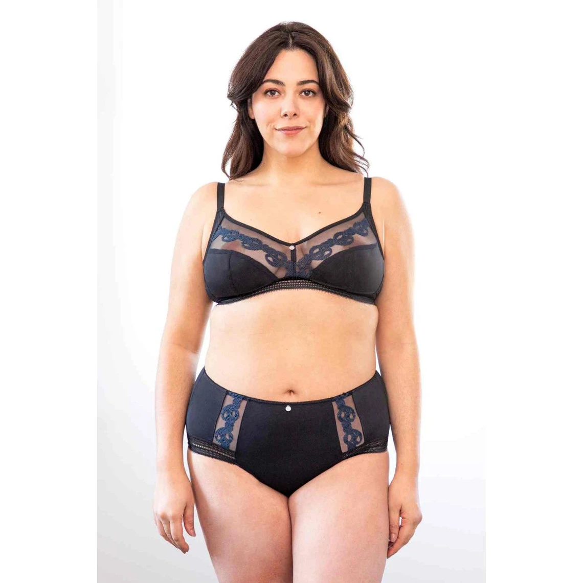 Conçu dans un alliage de microfibre opaque et d’un tulle délicat, il offre des bonnets partiellement doublés, assurant un confort imparable. Une large bande élastique l’accompagne pour procurer un bon maintien des seins.